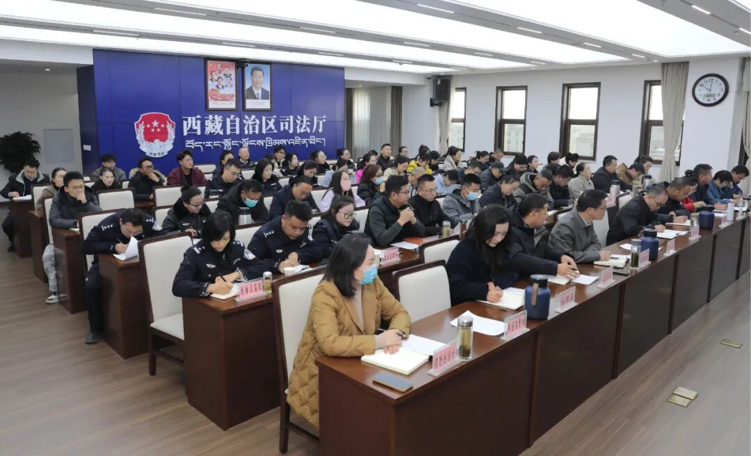 为完整准确领悟习近平总书记在考察中央办公厅工作时提出的“五个坚持”重要指示精神,将精神实质转化为服务提升司法行政业务水平的强大动力,2025年11月28日,自治区司法厅以“完整准确领会‘五个坚持’精神实质,全面规范提升司法行政业务水平”为主题,举办第一期司法行政大讲坛,厅办公室主要负责人主讲,厅党委委员、副厅长张雪原出席并点评,厅机关和驻拉萨各直属单位干警职工共计70余人参加。