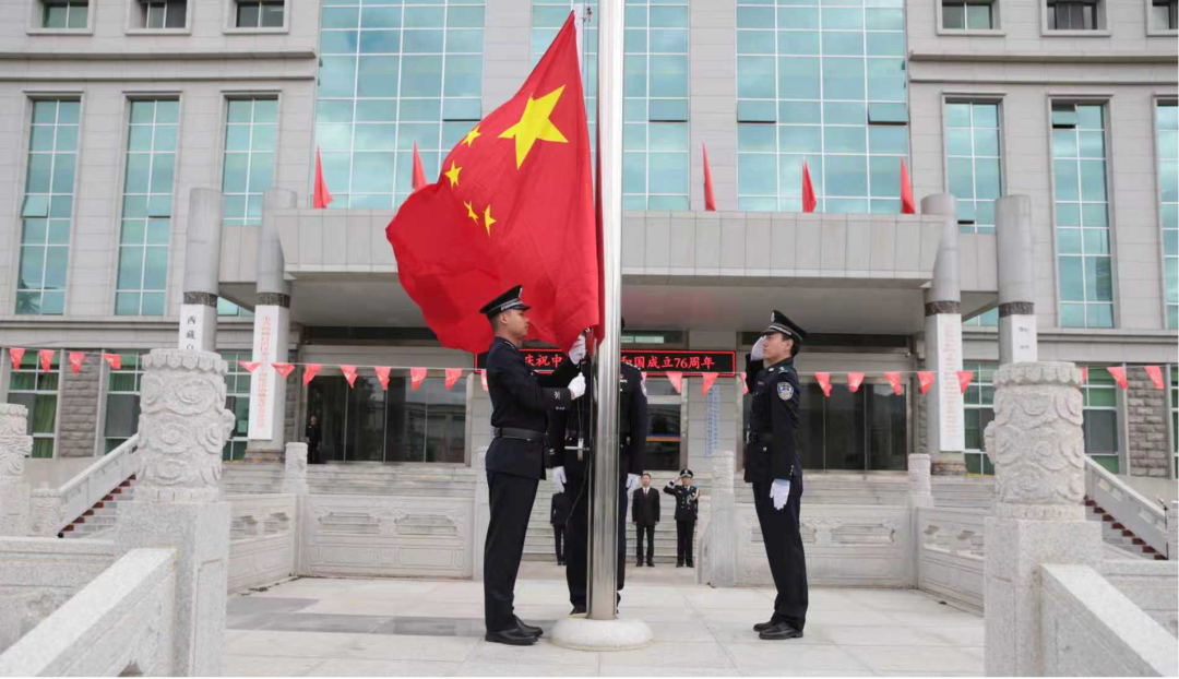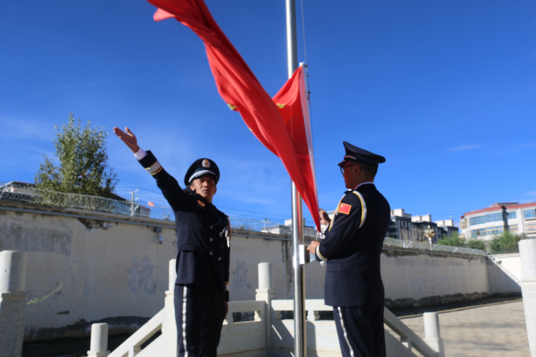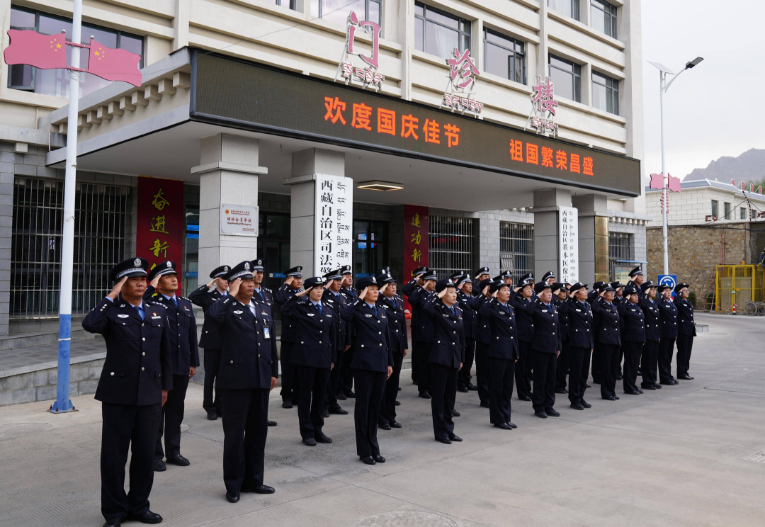 国旗飘扬,警心向党,10月1日,西藏自治区司法厅系统庄重举行“升国旗 唱国歌”仪式,热烈庆祝中华人民共和国成立76周年。厅系统全体干警职工共同唱响礼赞新中国、奋进新时代的主旋律,进一步激发爱国热情,凝聚奋进力量。