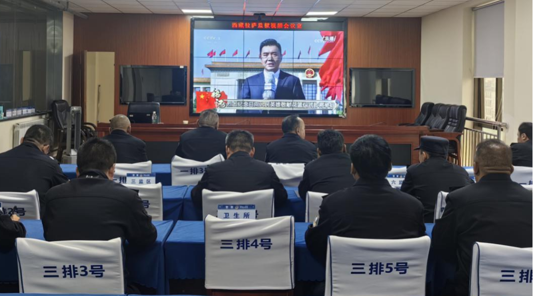 拉萨监狱组织民警职工集中观看爱国主义电影《南京照相馆》和烈士纪念日向人民英雄敬献花篮仪式,庄重缅怀英烈、传承革命精神。