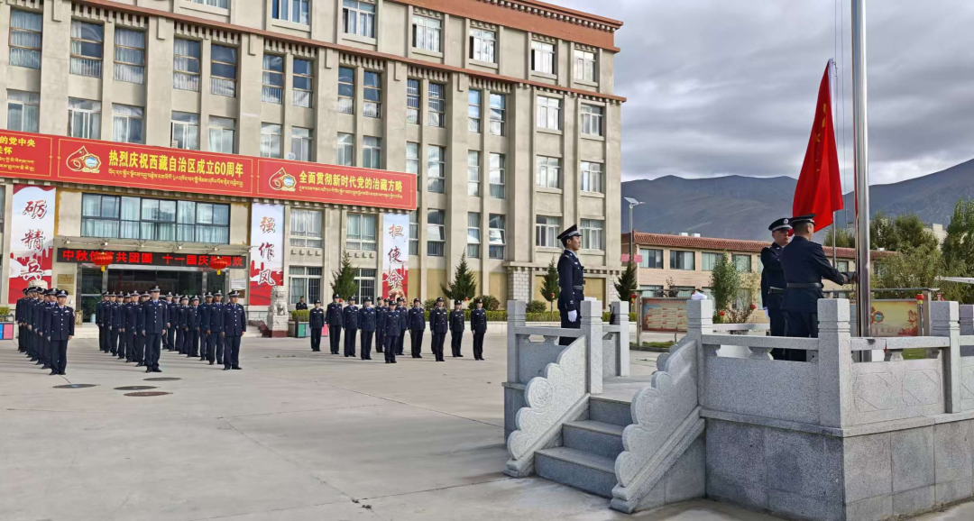 日喀则强制隔离戒毒所隆重举行“庆国庆”升国旗仪式,以庄严仪式致敬祖国华诞,进一步激发全所民警职工爱国热情。