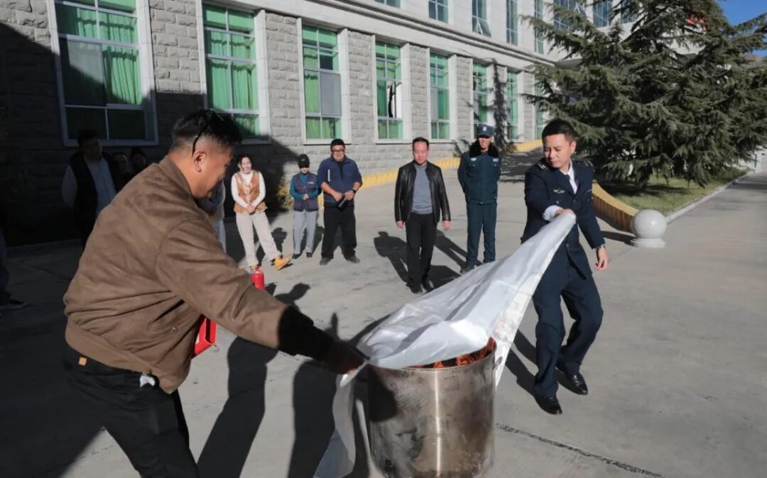 理论授课结束后,实操演练在机关室外空旷区域开展。现场设置模拟火源,参训人员分组轮流操作干粉灭火器、灭火毯等消防器材,在专家的手把手指导下,亲身体验火灾扑救全过程,将理论知识转化为实战技能。演练过程中,大家严格遵循操作规范,动作标准有序,有效提升了初期火灾扑救的实操能力。