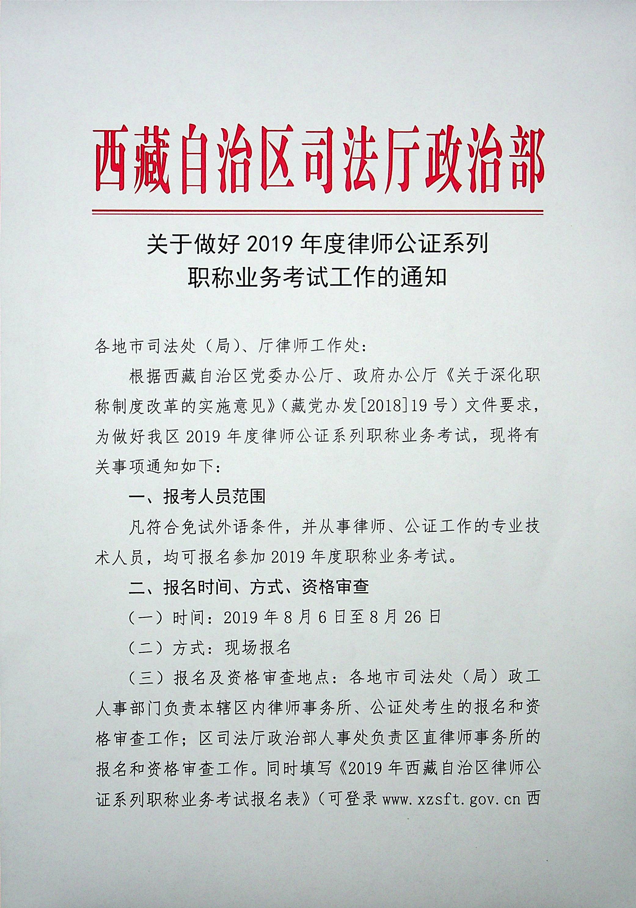 关于做好2019年度律师公证系列职称业务考试工作的通知