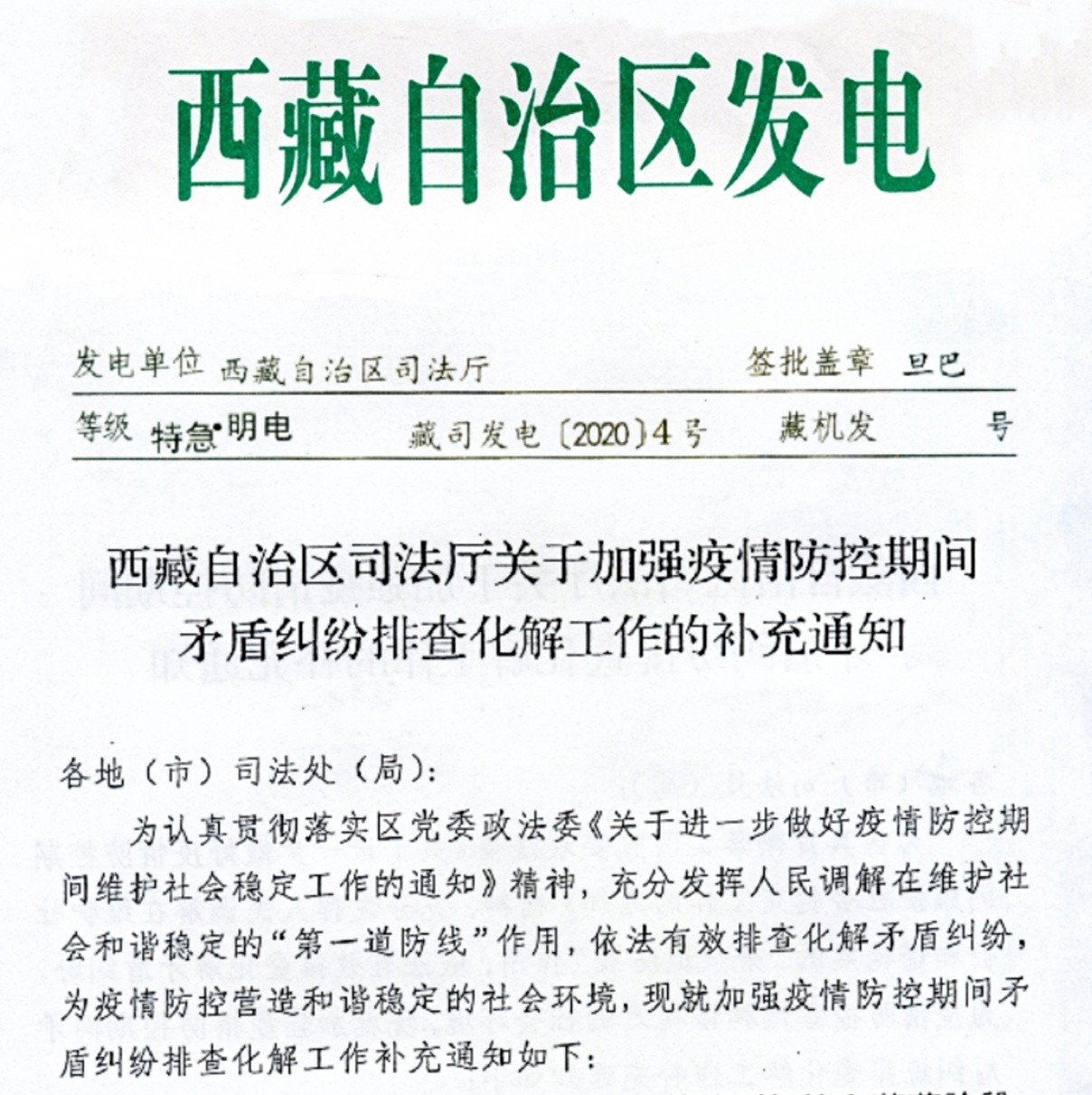 西藏自治区司法厅印发通知,安排部署疫情防控期间矛盾纠纷排查化解工作