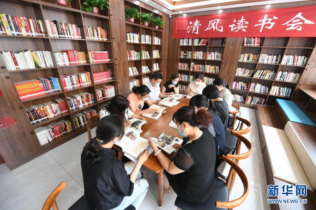 2020年6月23日,河北省枣强县纪委监委组织部分单位党员干部,在县文化广电和旅游局举行“清风读书会”。新华社记者 李晓果 摄