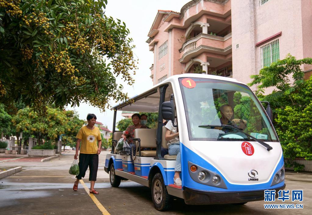广东省佛山市紫南村免费开行村内环保电瓶车交通线,方便村民出行(6月28日摄)。新华社记者 刘大伟 摄