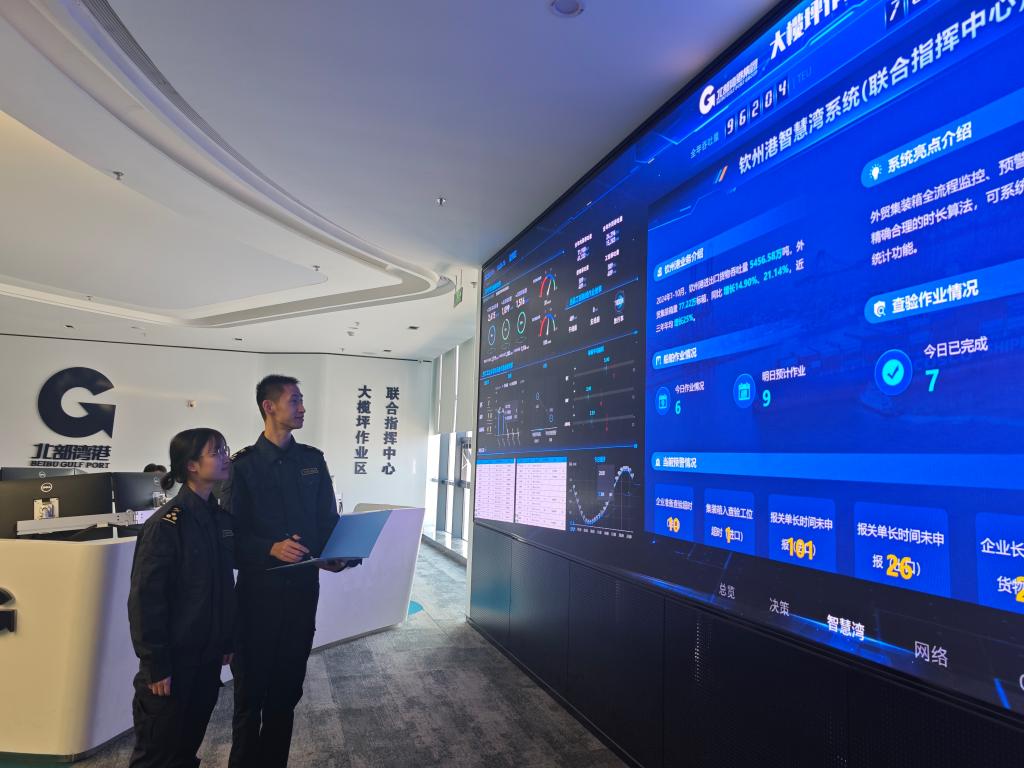 在上线“智慧湾”系统基础上,海关与港口物流、报关、铁路等各方打破数据信息壁垒,共同破解通关堵点难点问题。2024年,钦州港口岸总体集疏运效率提升约25%。
